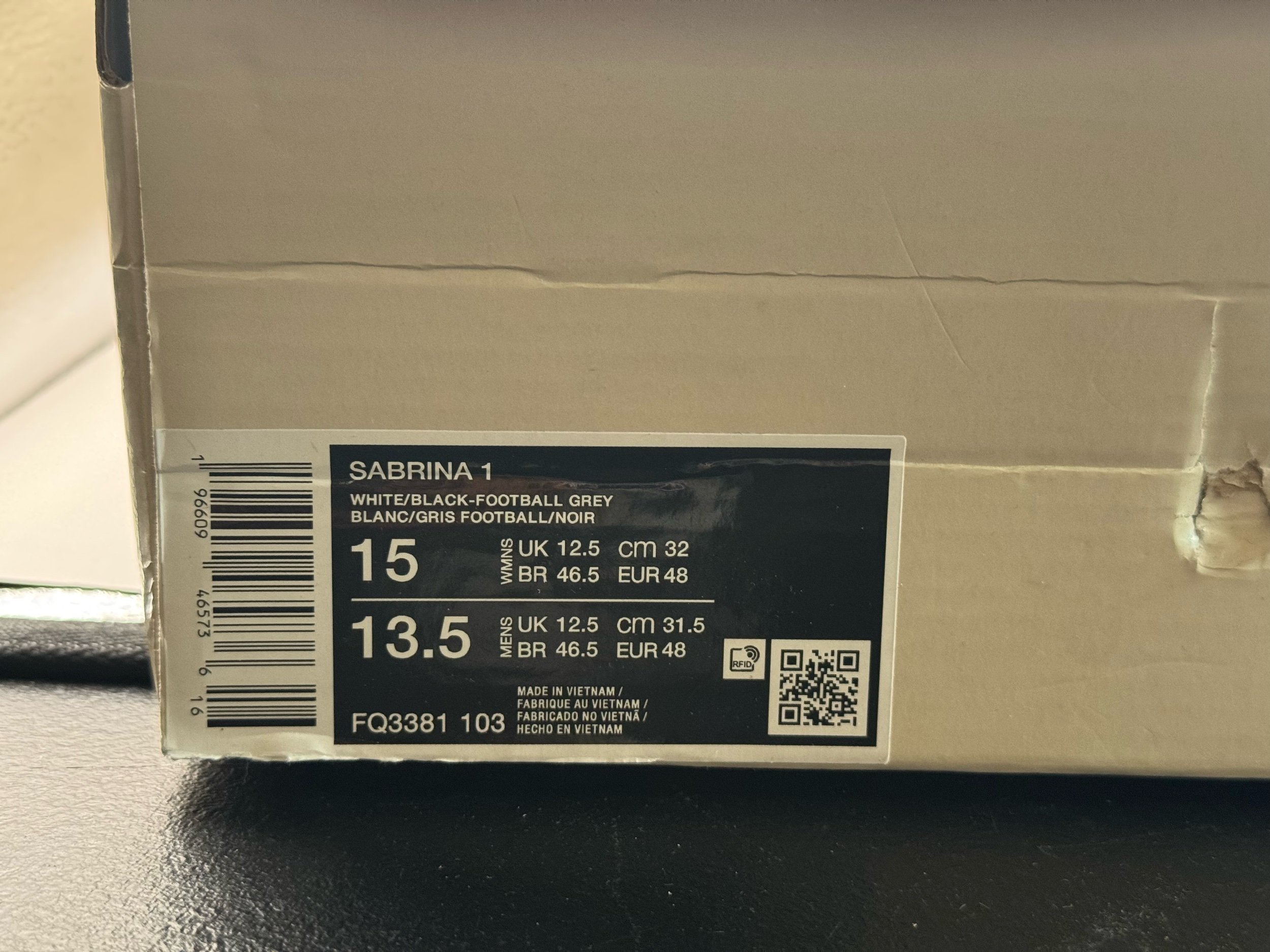 Men Shoes › Nike Sabrina 1 Basketball Shoes Womens Sz 15 Mens Sz 13.5 White Black FQ3381-103 Image 1 of 6 Image 2 of 6 Image 3 of 6 Image 4 of 6 Image 5 of 6 Image 6 of 6 Nike Sabrina 1 Basketball Shoes Womens Sz 15 Mens Sz 13.5 White Black FQ3381-103 $40.00 Add To Cart Added!