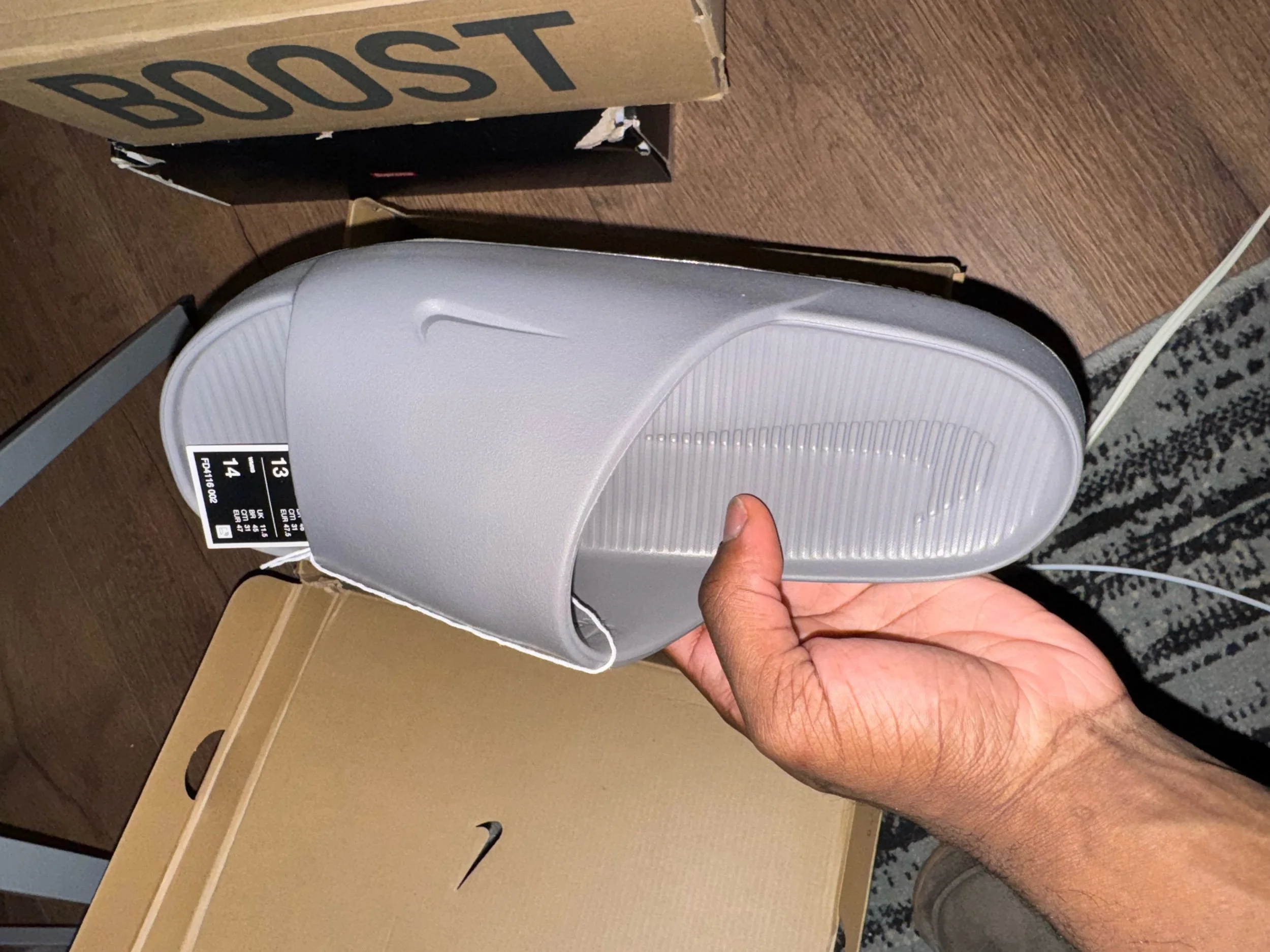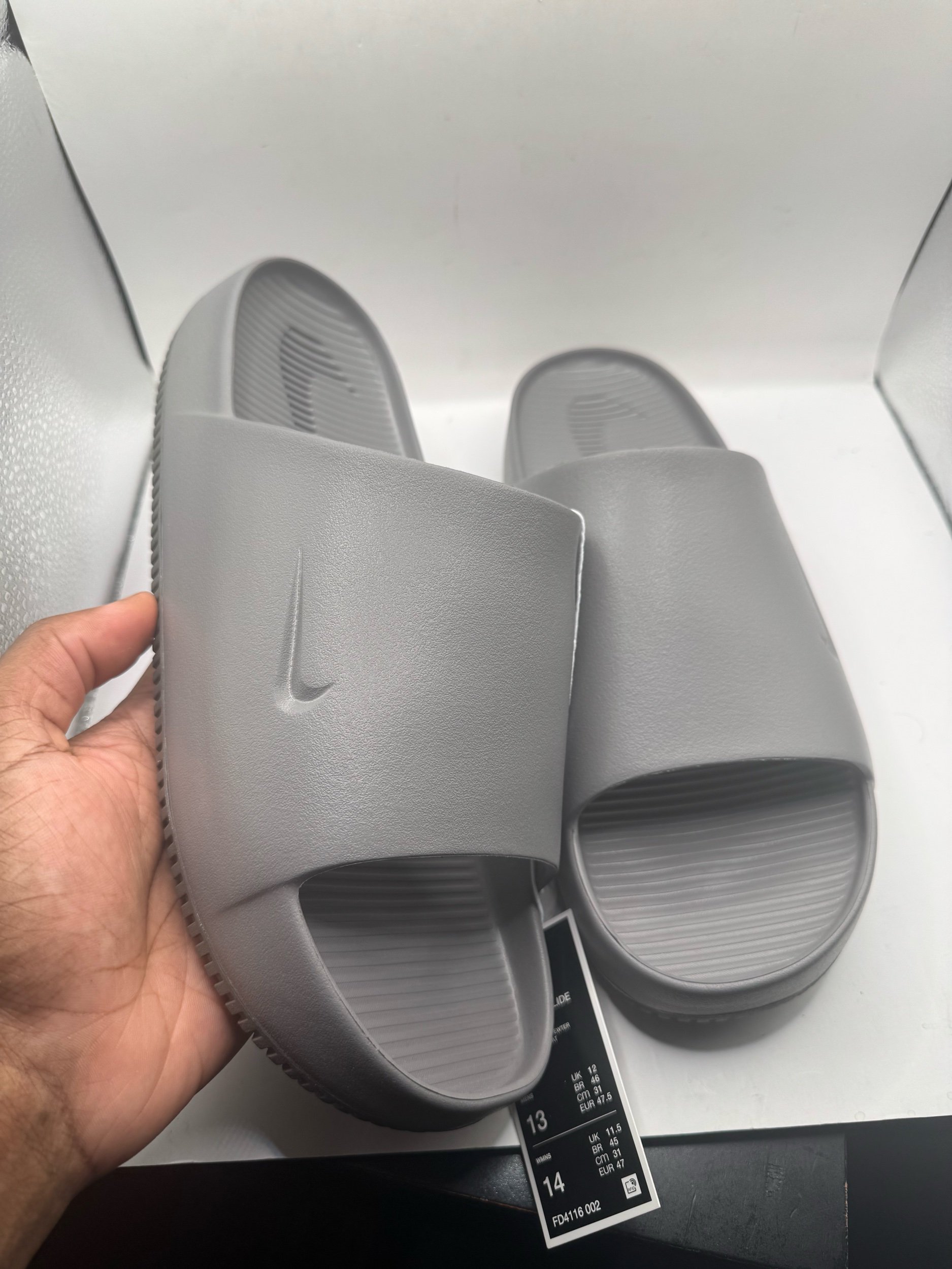 Men Shoes › Nike Calm Slide Flat Pewter Gray, Men’s Size 13, New, With Box, FD4116-002 Image 1 of 5 Image 2 of 5 Image 3 of 5 Image 4 of 5 Image 5 of 5 Nike Calm Slide Flat Pewter Gray, Men’s Size 13, New, With Box, FD4116-002 $75.00 Add To Cart Added!